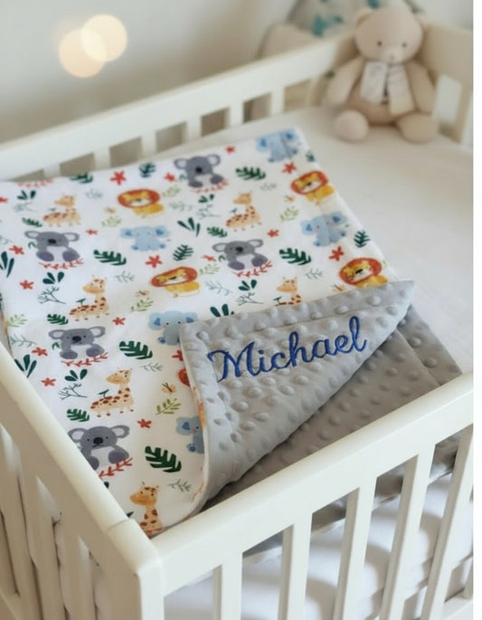 Personalized Safari Theme Baby Blanket – Custom Embroidered Name Blanket for Boys and Girls