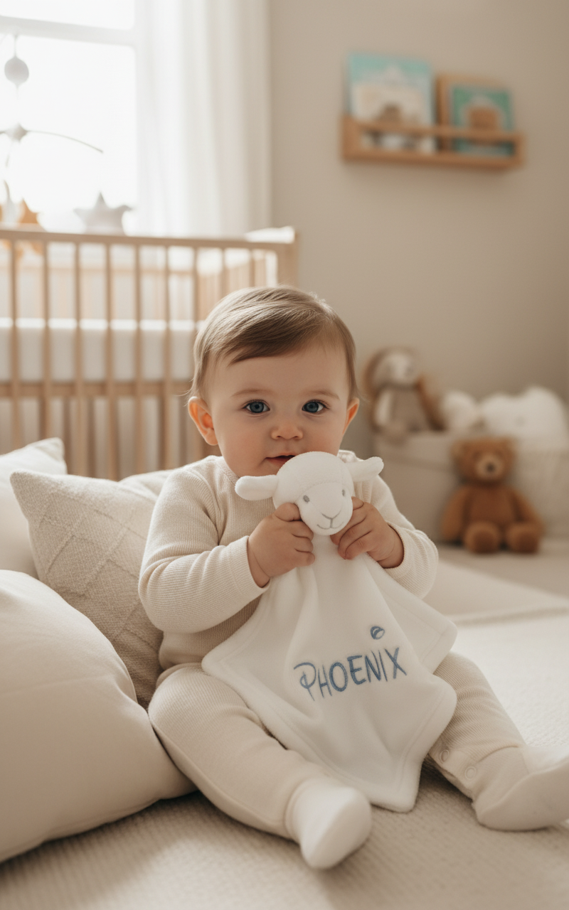 For your precious little one, their personalized security blanket is like a warm, loving hug from you whenever they need it. It's a soft haven that carries the scent of home and the comfort of your touch. With their name lovingly embroidered on it, this blanket becomes uniquely theirs, a source of solace in times of uncertainty. It's a constant companion in their journey, bringing them comfort, warmth, and the assurance that they are deeply loved and cared for.
